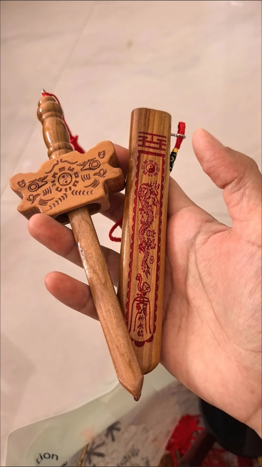 60cm Genuine Peach Wood "Hundred Blessings" Sword - Bat Carved Peachwood Sword for Home Decor & Fortune Attraction