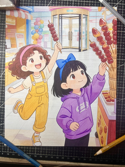 Exclusive Hand-Painted: Childhood Joy of Sugar-Coated Haws in the Old Alley